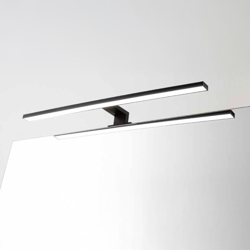 Son format allongé, avec une largeur de 60 cm et une profondeur de 10 cm, est idéal pour une installation linéaire au-dessus d'un miroir ou d'une armoire de toilette. La faible hauteur de 4 cm et son design épuré garantissent une intégration visuelle fluide et sans encombrement.