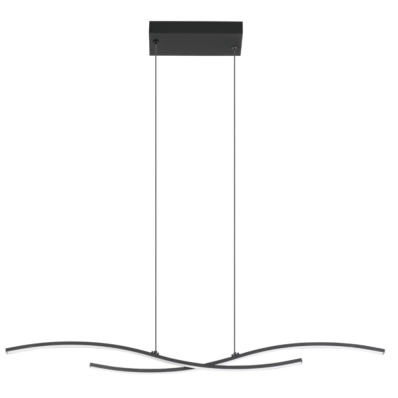 Cette suspension LED Alboraya de la marque Eglo combine l'acier noir et le plastique blanc pour créer un design saisissant.