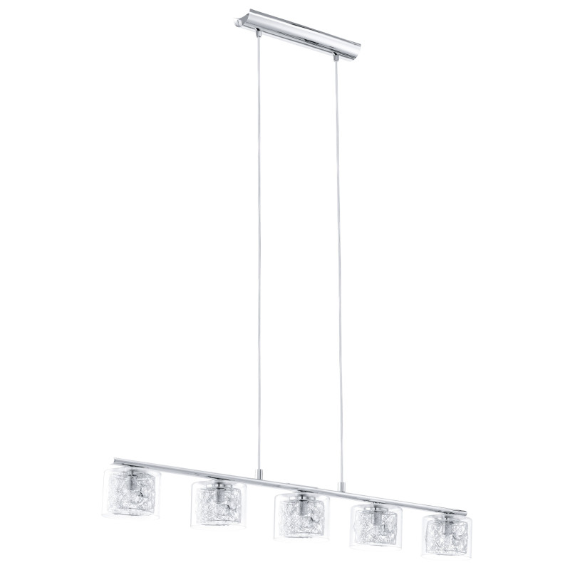 EGLO vous propose la suspension de la série de luminaires PIANELLA. Ce magnifique lustre de 5 lumières procurera à votre table une grande élégance ainsi qu'une luminosité optimale de par la puissance de ses spots.