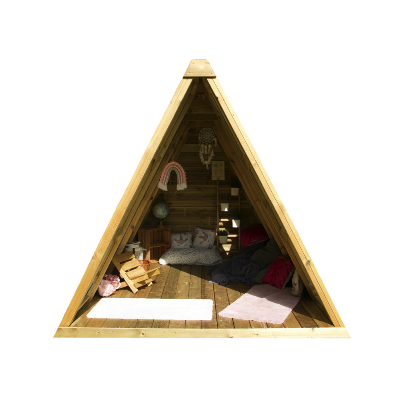 Conçu pour être assemblé par l'utilisateur, ce tipi représente un projet accessible. Une fois monté, il devient un lieu de rendez-vous privilégié pour les enfants âgés de 3 à 13 ans. Sa vocation est de stimuler le jeu libre et la créativité en plein air.