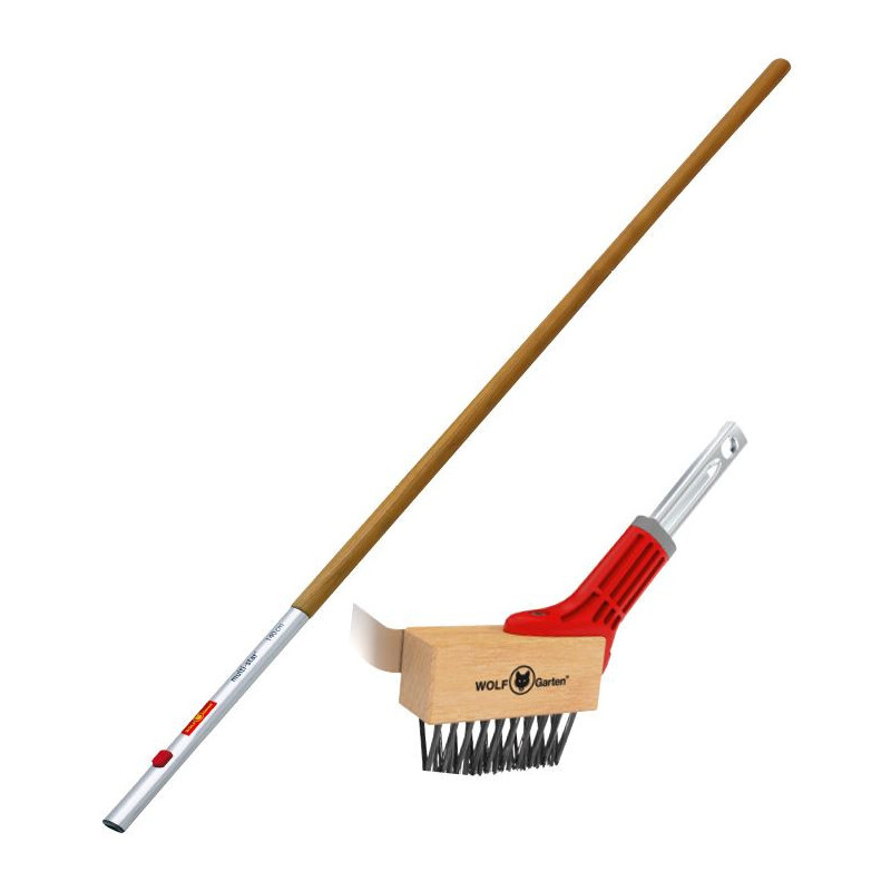 Cette brosse permet d'évacuer les mauvaises herbes et la mousse dans les joints, entre des pavés ou des marches. Cette brosse avec grattoir est fournie avec un manche interchangeable Multi-Star en bois de 140 cm de long.