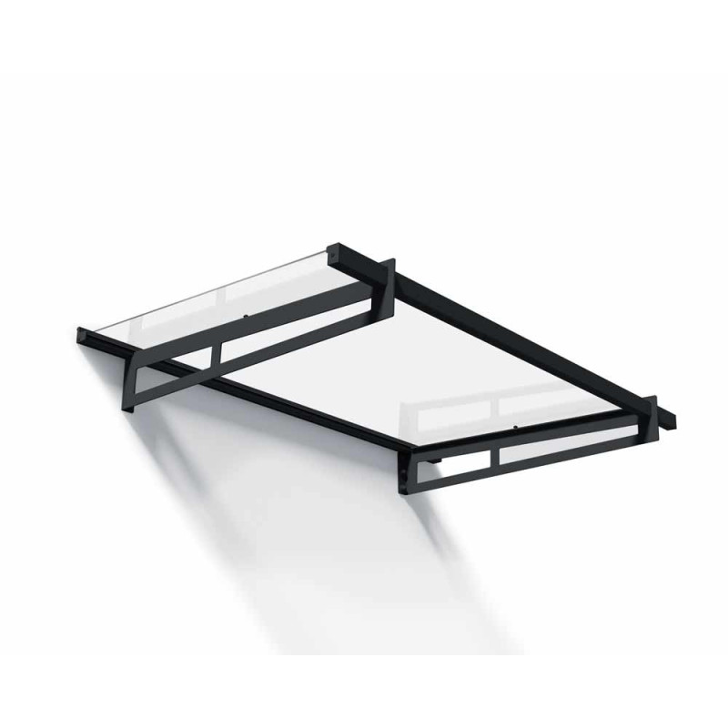La marquise de porte Bremen gris foncé CANOPIA, de 205 x 93,5 cm, protège votre entrée des intempéries. Sa structure en aluminium et polycarbonate de 4 mm résiste aux vents jusqu'à 120 km/h et supporte 120 kg/m² de neige. Ce modèle gris anthracite intègre un système d'assemblage coulissant.