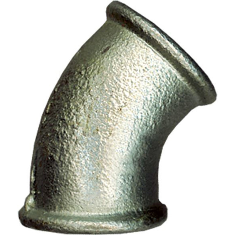 Ce coude à 45 degrés de la marque Saninstal, de type FF et au diamètre nominal de 1/2", est fabriqué en acier zingué. Il permet la réalisation de raccordements angulaires précis dans les installations de plomberie.