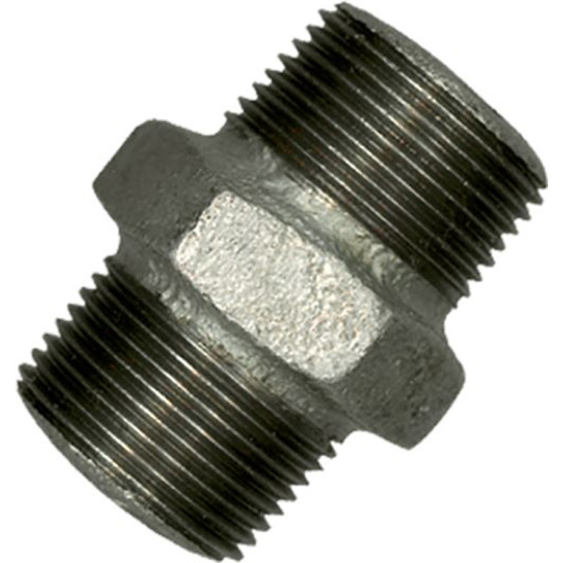 Ce raccord fileté présente un filetage métrique mâle à chaque extrémité, permettant un montage direct et une étanchéité optimisée avec les joints appropriés. Le procédé de galvanisation appliqué sur l'acier de base assure une protection durable, contribuant à la longévité de l'installation complète. Son format compact et son poids réduit facilitent la manipulation et l'intégration dans des espaces parfois restreints.