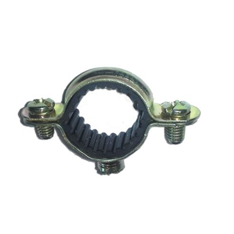 Ce lot de 5 colliers d'isolation bichromate de la marque Saninstal, d'un diamètre de 15 mm, est conçu pour le matériel de raccordement. Sa construction en alliage métallique assure une fixation robuste et durable.
