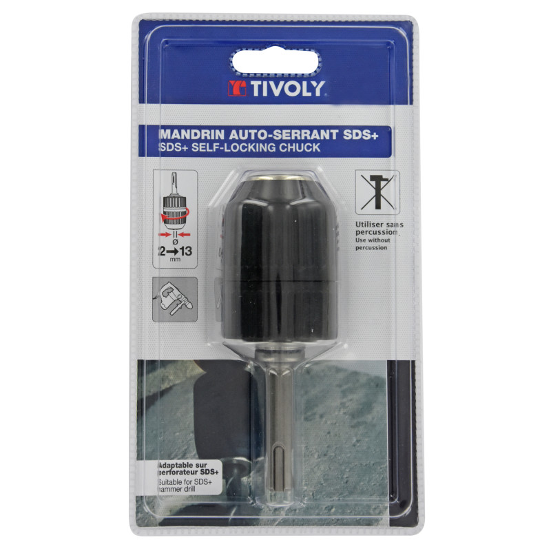 Le mandrin auto-serrant SDS+ TIVOLY transforme votre perforateur en perceuse, acceptant des forets de Ø 2 à 13 mm. Il est conçu pour une utilisation sans percussion.