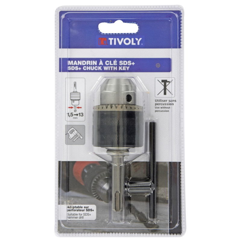 Le mandrin à clé SDS+ TIVOLY transforme votre marteau perforateur en perceuse, avec un diamètre de serrage de 1,5 à 13 mm. Il s'utilise sans percussion pour une précision optimale.