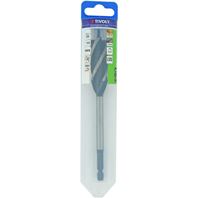 Le Foret hexagonal Extra pour bois TIVOLY Ø 20 x 165 mm, avec ses quatre taillants, assure un perçage rapide et précis. Sa queue hexagonale 6,35 Quick-change facilite l'usage courant.