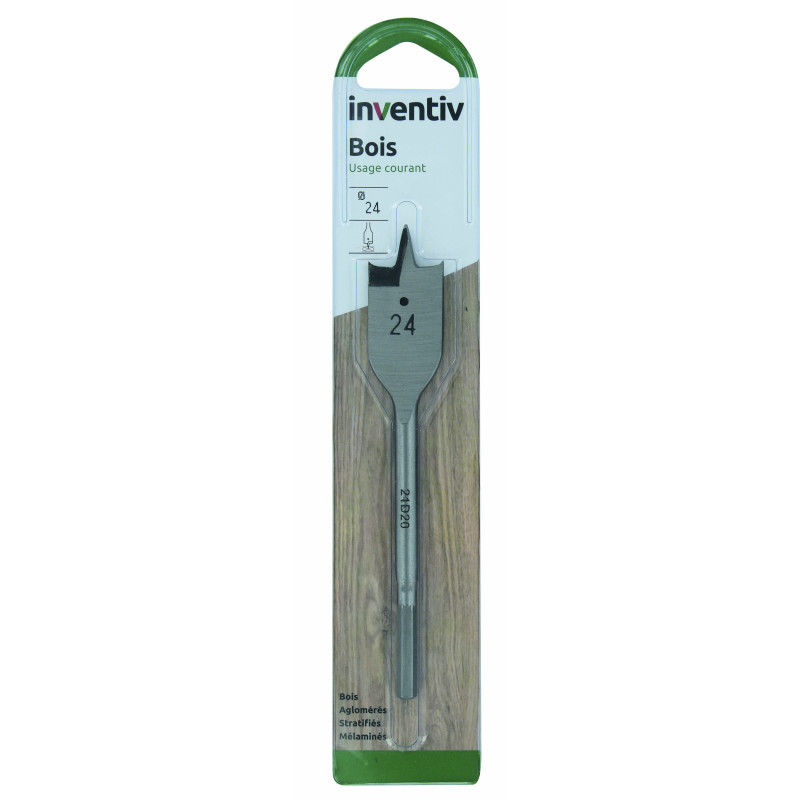 Le foret à tête plate pour bois de la marque Inventiv est une mèche plate bois D25 conçue pour un usage courant, offrant un bon rapport qualité/prix.