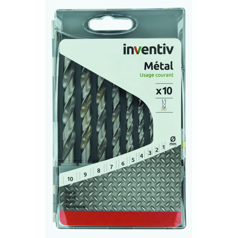 Le set de forets pour métal de la marque Inventiv comprend 10 pièces de diamètres de 1 à 10 mm. Ce coffret est conçu pour un usage courant sur acier, acier galvanisé et aluminium, offrant un bon rapport qualité/prix.