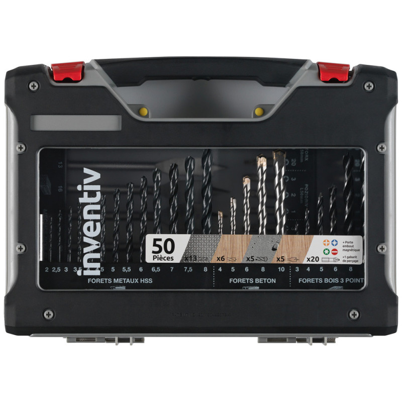 Le set d'accessoires de perçage et vissage Mixte 50 pièces INVENTIV est un coffret complet. Il offre l'essentiel pour percer et visser dans divers matériaux.