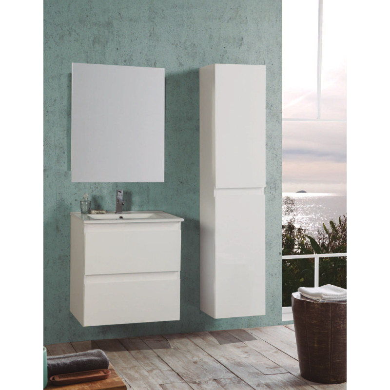 L'ensemble Valentina propose une solution de rangement complète avec un meuble sous-vasque blanc brillant à deux tiroirs et un miroir. Sa vasque en céramique résistante et son design moderne en font un choix idéal pour une salle de bain.