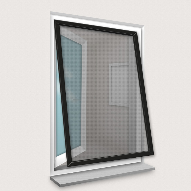 La teinte noire du cadre et du maillage contribue à une intégration visuelle discrète. Cette caractéristique permet au dispositif de s'harmoniser avec la plupart des cadres de fenêtre sans altérer l'esthétique de la façade ou de l'intérieur.