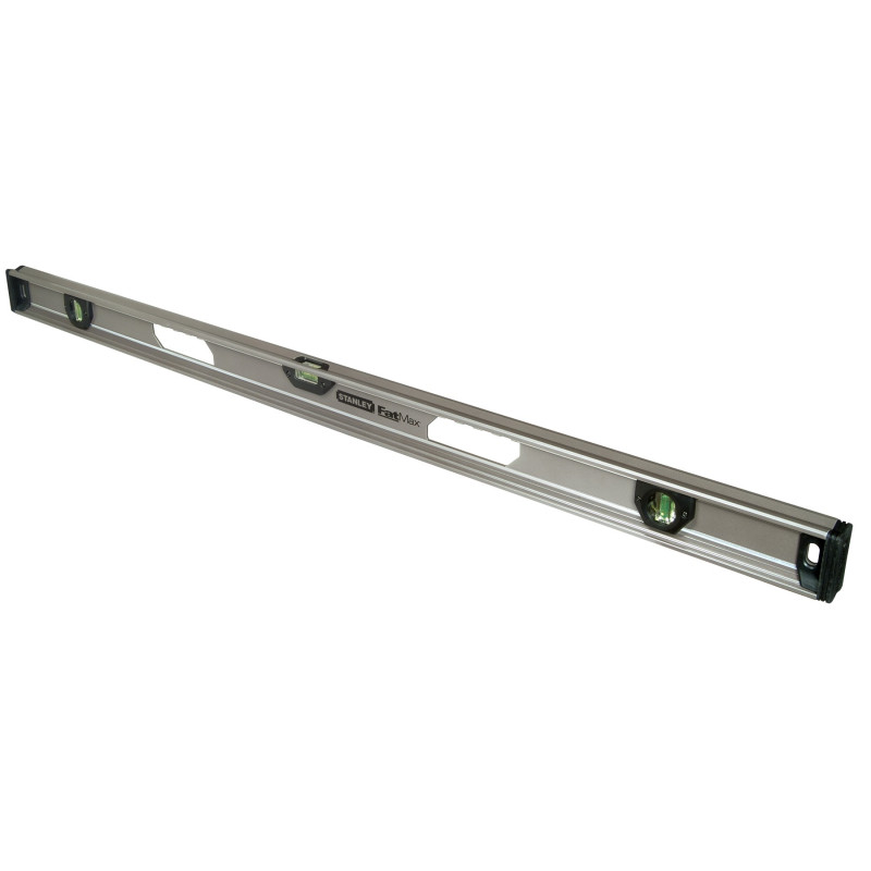 Le Niveau à bulle I-beam Pro 120 cm STANLEY FATMAX, en aluminium, offre une précision de +/- 0,5 mm/m. Son corps léger et solide intègre une rainure pour la mesure de tuyaux.