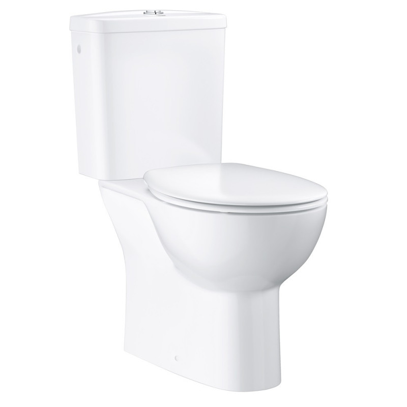 Le pack WC à poser Bau Ceramic de GROHE, en porcelaine vitrifiée blanc alpin, intègre une sortie verticale et une technologie sans bride pour une hygiène optimale. Son réservoir assorti et son abattant avec fonction SoftClose amovible complètent cet ensemble pour une rénovation complète de salle de bains.