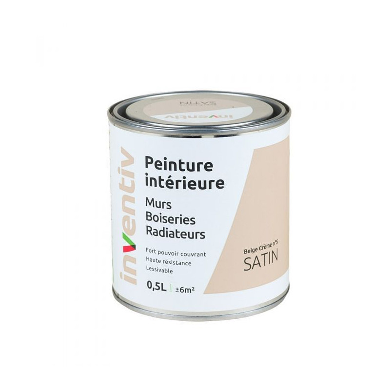 D'une contenance de 0,5 L, cette peinture beige crème n°5 satinée vous permettra de choisir, de tester, de comparer ou bien de retoucher une couleur facilement.