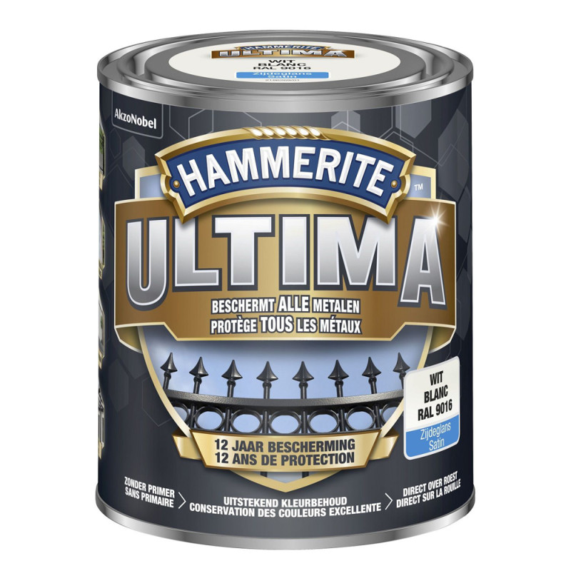 Compatible avec tous types de métaux, la laque Ultima de la marque Hammerite est contenue dans un récipient de 0,75 L. Ce produit vous offre une belle couleur blanche à la finition satinée et vous assure une protection longue durée contre la rouille.