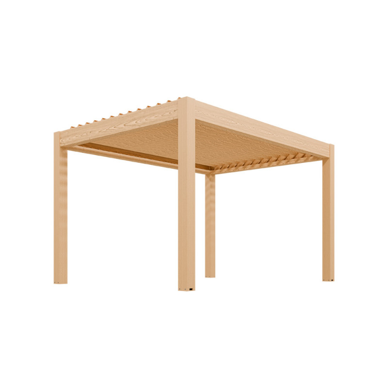 Dotée d'une belle couleur effet bois de chêne, cette pergola affiche un design épuré qui s'intégrera à merveilles dans vos extérieurs. Pour une durée de vie prolongée, ce modèle est muni d'une structure en aluminium qui lui confère une grande résistance à la corrosion et aux intempéries.