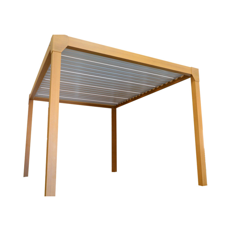 Proposée par la marque Green Outside, la pergola bioclimatique motirisée Solyola est l'élément parfait pour vous permettre de profiter des beaux jours. Ce modèle aspect bois est doté d'un toit composé de lames blanches orientables et d'un éclairage LED solaire intégré. Ses dimensions sont de 4 x 3 x 2,5 m.
