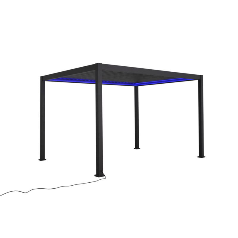 Un éclairage par bande LED multi-couleurs est intégré à la structure. Son intensité réglable offre la possibilité d'illuminer les soirées en plein air, prolongeant ainsi l'utilisation du patio dans une atmosphère chaleureuse et personnalisée.