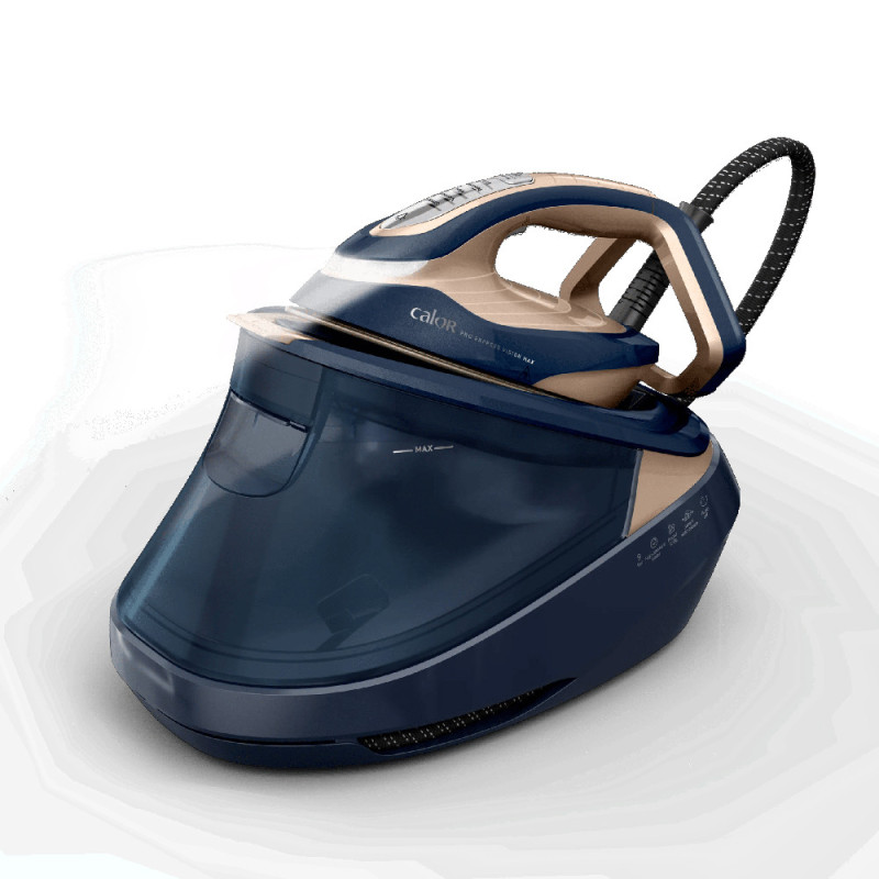 La centrale vapeur Pro Express Vision Max de la marque Calor, avec son débit vapeur continu de 215 g/min et sa fonction pressing, élimine efficacement les plis les plus résistants. Son éclairage LED amélioré et ses cinq réglages intégrés assurent une précision optimale sur tous les types de textiles.
