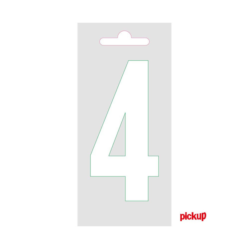 Le chiffre 4 adhésif blanc de la marque Pickup est un élément de signalisation conçu pour une identification immédiate. Ce pictogramme en vinyle synthétique offre une solution de marquage simple et efficace. Sa longueur de 9 cm lui confère une présence visuelle adaptée à une lecture à distance, tandis que sa couleur blanche assure un contraste élevé sur la plupart des supports.