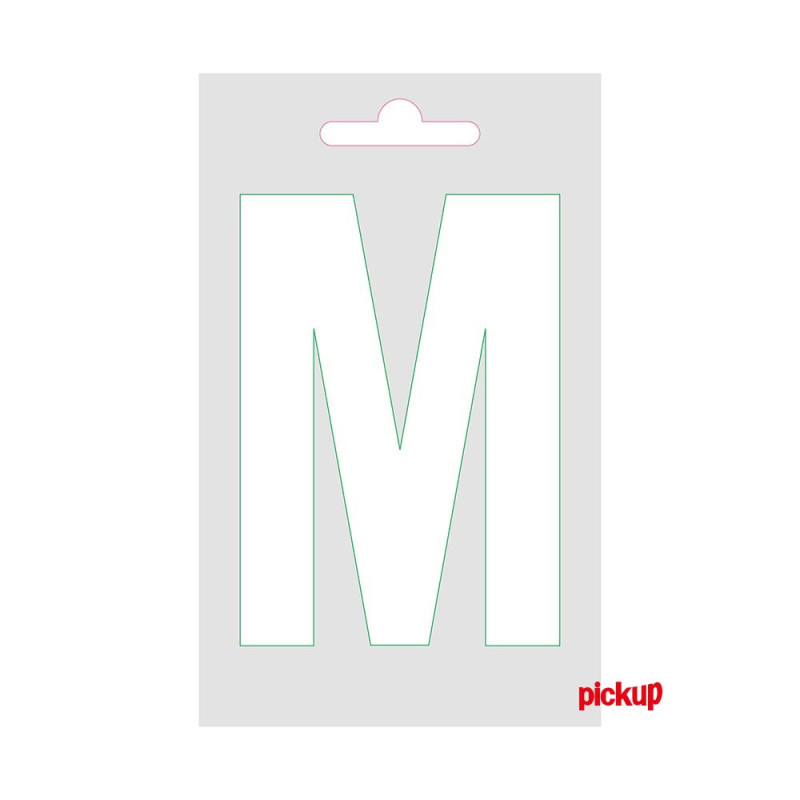 La lettre M adhésive blanche de la marque Pickup est un élément de signalisation conçu pour un marquage clair et durable. Sa dimension de 9 cm de longueur lui confère une présence visuelle immédiate, adaptée à une lecture à distance. La fixation est assurée par un adhésif performant permettant une application directe sur des surfaces lisses comme une vitre ou une porte. La matière utilisée est un vinyle synthétique, garantissant une bonne résistance aux conditions d'intérieur.