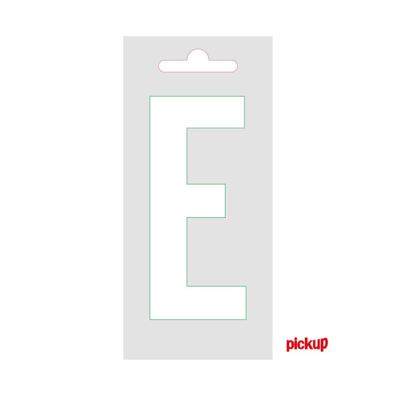 La lettre E adhésive blanche de la marque Pickup est un élément de signalisation conçu pour une identification immédiate. Ce pictogramme en vinyle synthétique blanc, de 9 cm de longueur, s'applique directement sur les surfaces lisses grâce à son système de fixation par adhésif. Son utilisation principale est de marquer, d'identifier ou de signaler un espace, un équipement ou une direction de manière permanente et visible.