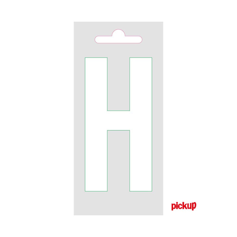 Ce pictogramme répond à un besoin d'identification et d'orientation. Sa taille standardisée de 9 cm le rend adapté pour une signalisation directionnelle, un marquage de locaux ou une personnalisation d'espaces. La Lettre H adhésive blanche 9 cm PICKUP sert ainsi à communiquer une information essentielle de manière permanente et professionnelle.