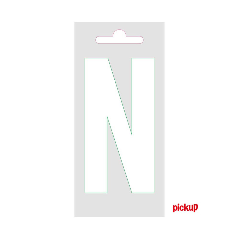 La lettre N adhésive blanche de la marque Pickup est un élément de signalisation conçu pour une identification immédiate. Ce pictogramme en vinyle synthétique présente des dimensions précises de 9 cm de longueur, assurant une excellente visibilité. Sa fixation par adhésif permet une application directe sur des surfaces lisses telles que des vitres ou des portes.