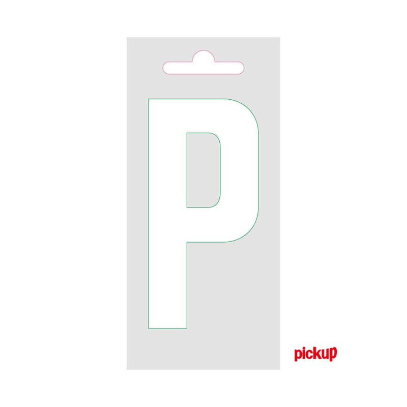 La lettre P adhésive blanche de la marque Pickup est un élément de signalisation conçu pour un marquage clair et durable. Ce pictogramme en vinyle synthétique présente des dimensions de 9 cm en hauteur et en largeur, formant un format carré aisément identifiable. Son système de fixation repose sur une application par collage, permettant une installation directe sur les surfaces lisses telles que les vitres ou les portes.