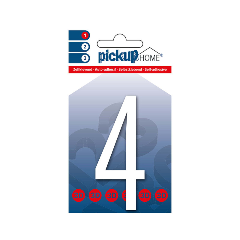Le chiffre 4 adhésif Oslo blanc de la marque Pickup est un pictogramme conçu pour une identification claire et durable. Il présente une hauteur et une largeur uniformes de 9 cm, formant un carré parfait. Sa matière première est un vinyle synthétique, assurant une bonne résistance aux conditions d'usage intérieur. La fixation s'effectue par collage, grâce à un adhésif acrylate pré-appliqué au dos de l'élément.