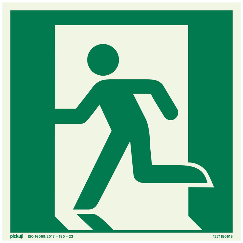 Pictogramme adhésif photoluminescent direction sortie gauche 15 x 15 cm PICKUP