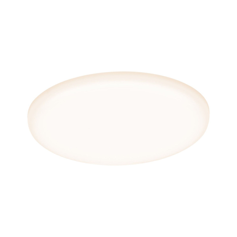 Ce panneau LED Veluna VariFit de la marque Paulmann, de 12,5 cm de diamètre, émet une lumière blanc chaud de 900 lm pour une consommation de 8,5 W. Son système de fixation à ressorts réglables s'adapte à des ouvertures de 45 à 100 mm.