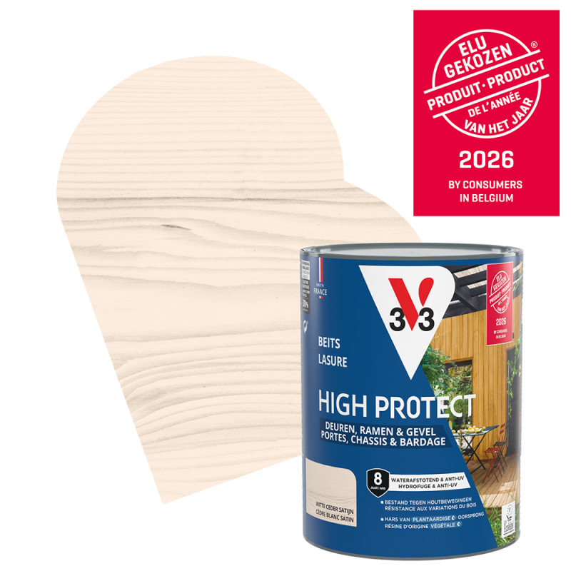 Contenue dans un récipient de 0,75 L, la lasure High Protect de la marque V33 vous permet d'embellir vos boiseries tout en les protégeant durablement face aux contraintes climatiques. Ce produit à la finition cèdre blanc est adapté à toutes les essences de bois.