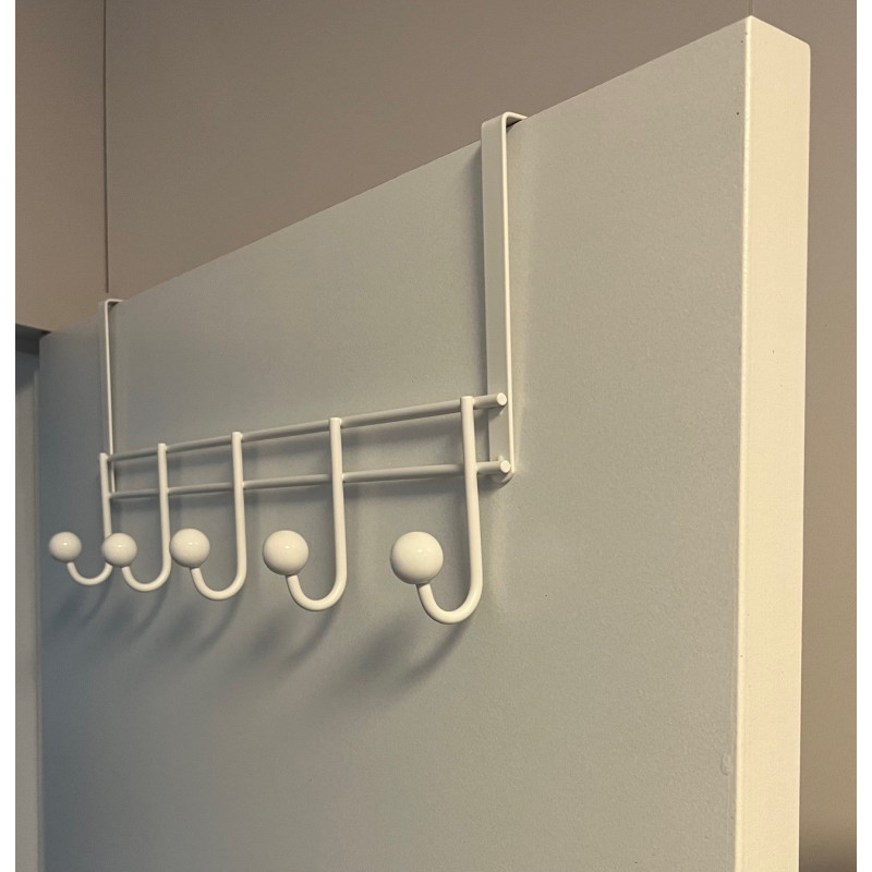 Ce porte-manteau blanc à cinq crochets de la marque Linea Bertomani est conçu pour se suspendre facilement sur une porte d'une épaisseur de 40 mm.
