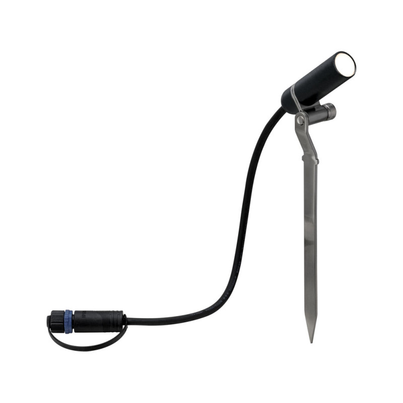 Le spot extérieur LED Plug & Shine Plantini de la marque Paulmann est conçu pour mettre en valeur les éléments spécifiques d'un espace vert. Son faisceau directionnel de 45 degrés permet d'illuminer avec précision de petits arbustes, des plantes en pot ou des compositions florales. L'installation est simplifiée grâce à un système modulaire Plug & Shine, permettant des extensions futures.