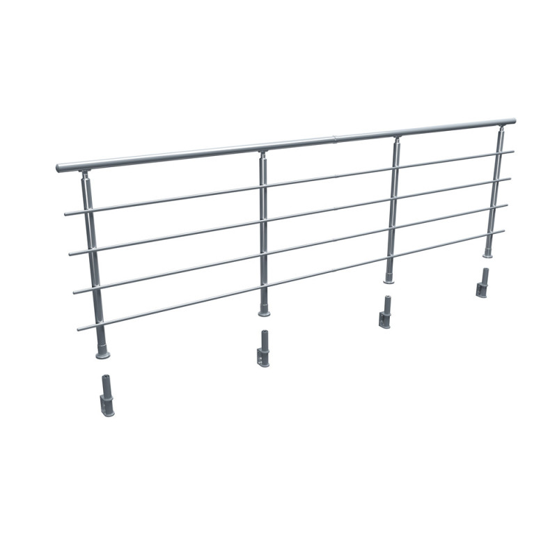 Le garde-corps se présente sous la forme d'un kit complet prêt à monter. La matière première, l'aluminium, assure une bonne rigidité de l'ensemble pour un poids maîtrisé. La couleur argent, uniforme sur l'ensemble des composants, permet une parfaite harmonie avec les rampes d'escalier des gammes compatibles. Ce kit de 320 cm est conçu pour couvrir de grandes ouvertures, offrant une solution de sécurité complète et esthétique pour finaliser l'aménagement d'un étage.