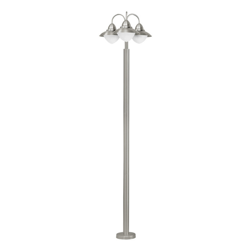 Le lampadaire extérieur Sidney de la marque Eglo, d'une hauteur de 220 cm, présente une construction en acier et trois têtes d'éclairage. Son indice de protection IP44 le rend résistant aux intempéries, et il accepte trois ampoules E27 pour un éclairage puissant.