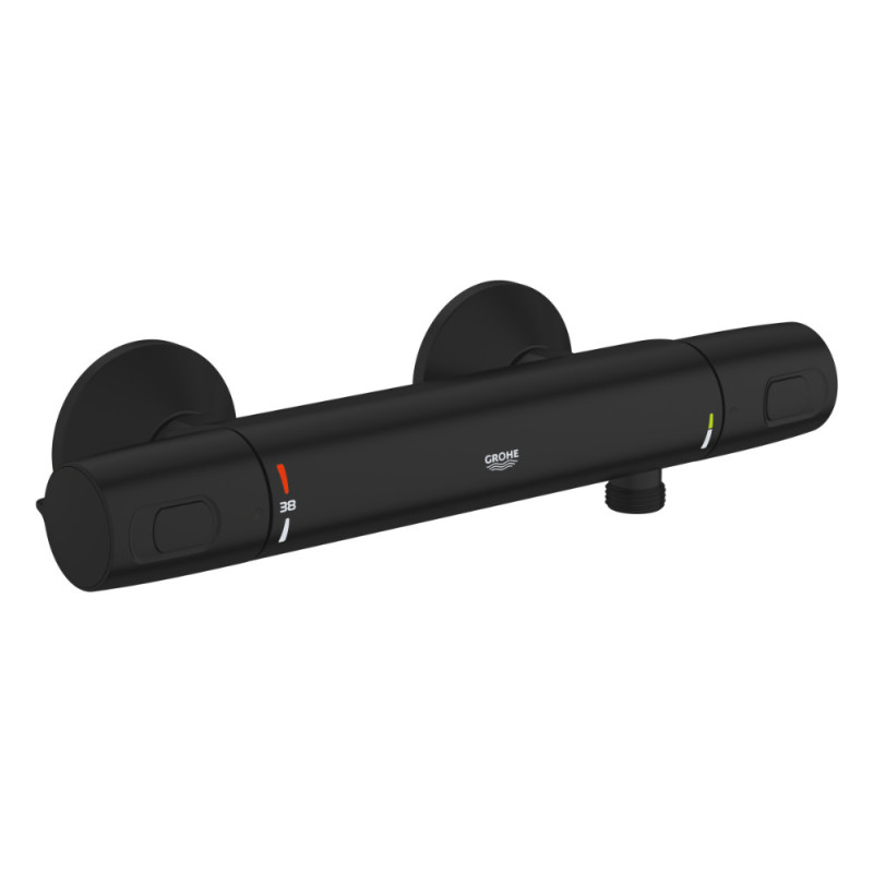Le mitigeur thermostatique GROHE Precision Trend en finition noir mat assure une température d'eau stable et sécurisée par son système GROHE TurboStat. Son design contemporain intègre des économiseurs d'eau et une limitation de température à 38°C pour un usage confortable et responsable.