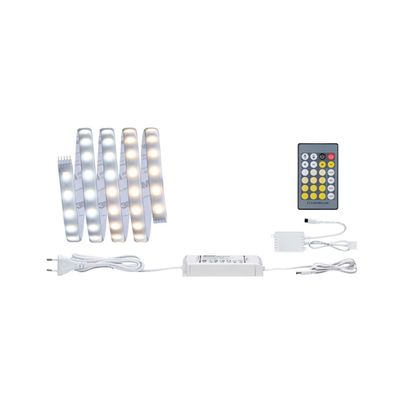 Le ruban LED MaxLed 500 de la marque Paulmann, d'une longueur de 1,5 m et d'une puissance de 10 W, émet un flux lumineux de 825 lm. Son éclairage blanc dimmable offre une température de couleur réglable de 2700 à 6500 K, permettant une adaptation parfaite à l'ambiance souhaitée.