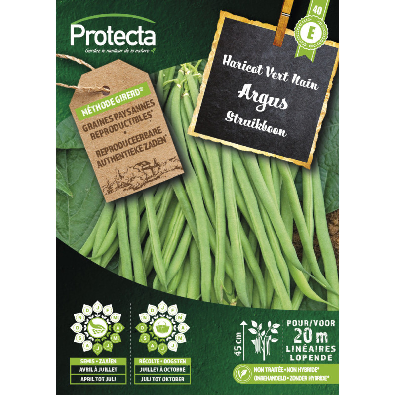 La variété Argus PROTECTA est une semence d'haricot vert nain réputée pour sa productivité élevée et son port compact. Elle produit des gousses longues et fines, tout en offrant une résistance aux maladies appréciée des jardiniers.