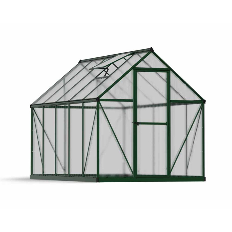 La serre en polycarbonate Mythos verte 5,4 m² CANOPIA, avec sa structure en aluminium et ses panneaux double paroi de 4 mm, offre une protection optimale. Elle assure une régulation thermique et lumineuse pour le jardinage toute l'année.