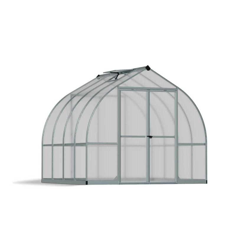 La serre en polycarbonate Bella argentée CANOPIA de 5,6 m² intègre des panneaux double paroi incassables et une structure en aluminium résistant à la rouille. Sa forme en cloche améliore la résistance au vent et facilite l'évacuation de la neige.
