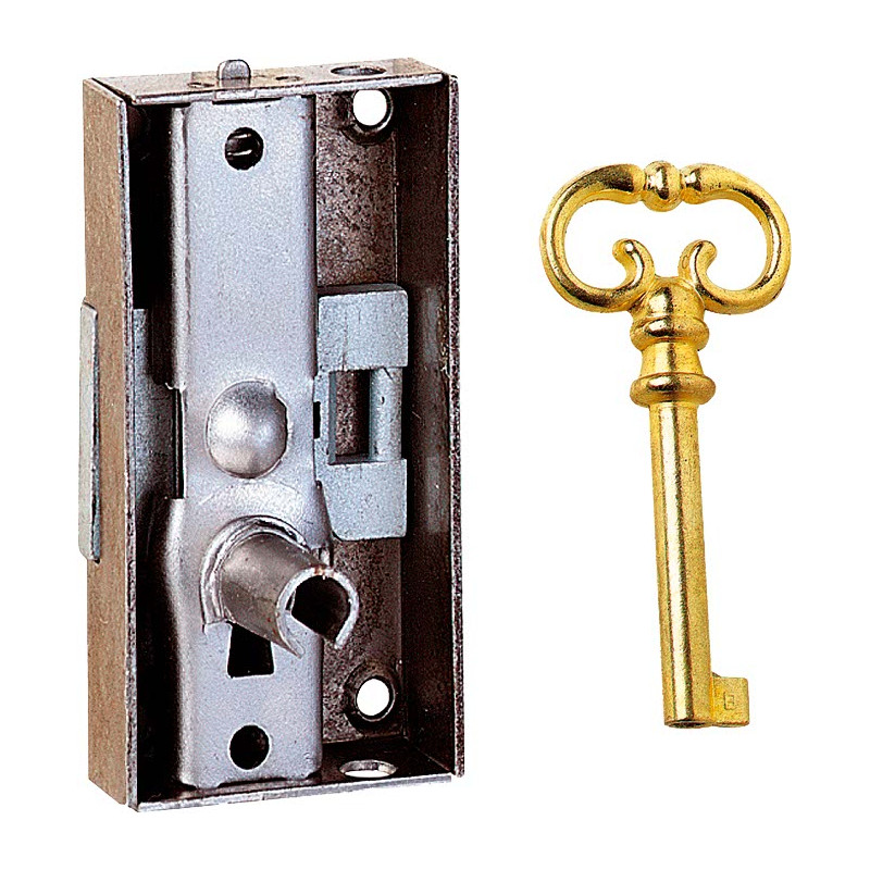 Cette serrure de vitrine à appliquer convient particulièrement pour le remplacement d'anciennes serrures défectueuses.