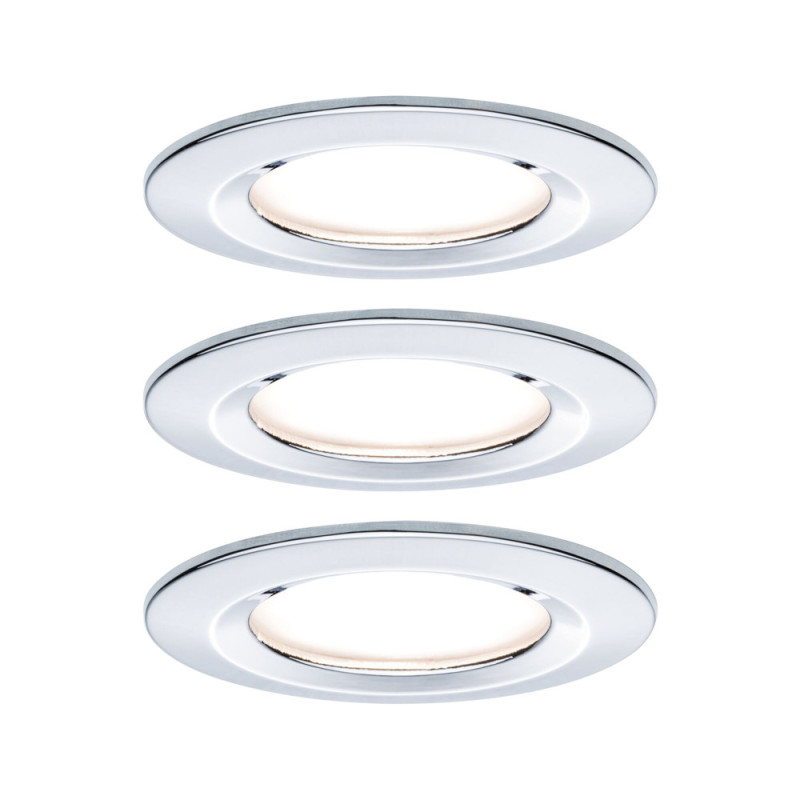 Ce pack de trois spots encastrables LED Nova de la marque Paulmann, en finition chrome, diffuse une lumière blanc chaud de 2700K. Son indice de protection IP44 et son système de fixation par ressorts garantissent une installation simple et durable.