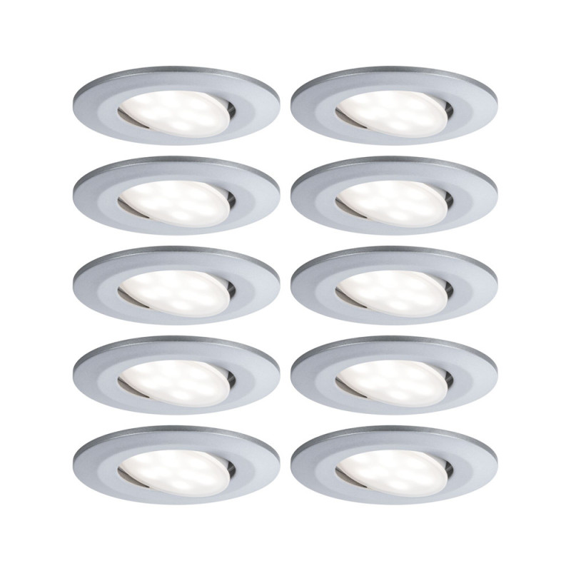 Ce kit de 10 spots encastrables LED Calla de la marque Paulmann offre un flux lumineux de 680 lm pour une puissance de 6 W. Sa finition chromée et sa température de couleur blanc neutre (4000K) s'accompagnent d'un indice de protection IP65 adapté à diverses ambiances.
