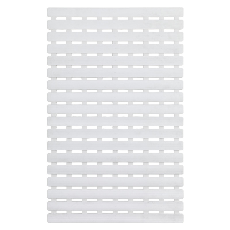 Ce tapis blanc est conçu en plastique et est perforé. Il laisse donc l'eau s'écouler facilement.