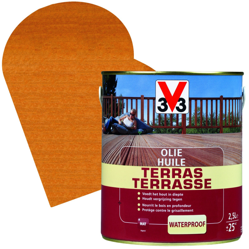 L'Huile Terrasse bankiraï mat V33 nourrit et protège vos bois extérieurs. Sa formule waterproof et anti-UV assure une finition mate durable, réduisant le grisaillement et le fendillement.