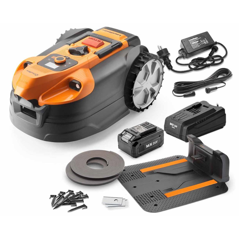 - Flexibilité d'installation avec l'option "Drop and Mow", éliminant le besoin d'une alimentation électrique permanente sur la zone de tonte.